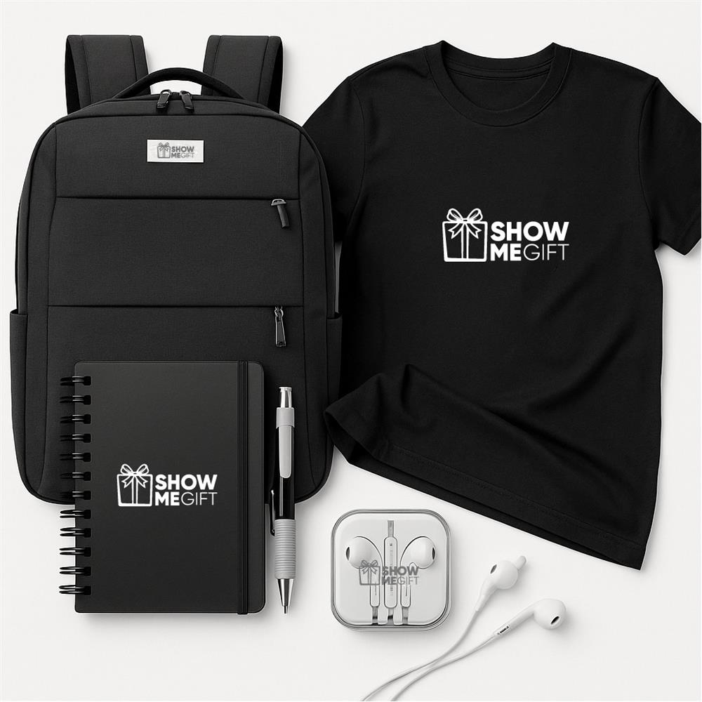 Kit Contem: 1 Mochila para Notebook, 1 Caderno com Caneta, 1 Fone de ouvido, 1 Camiseta -